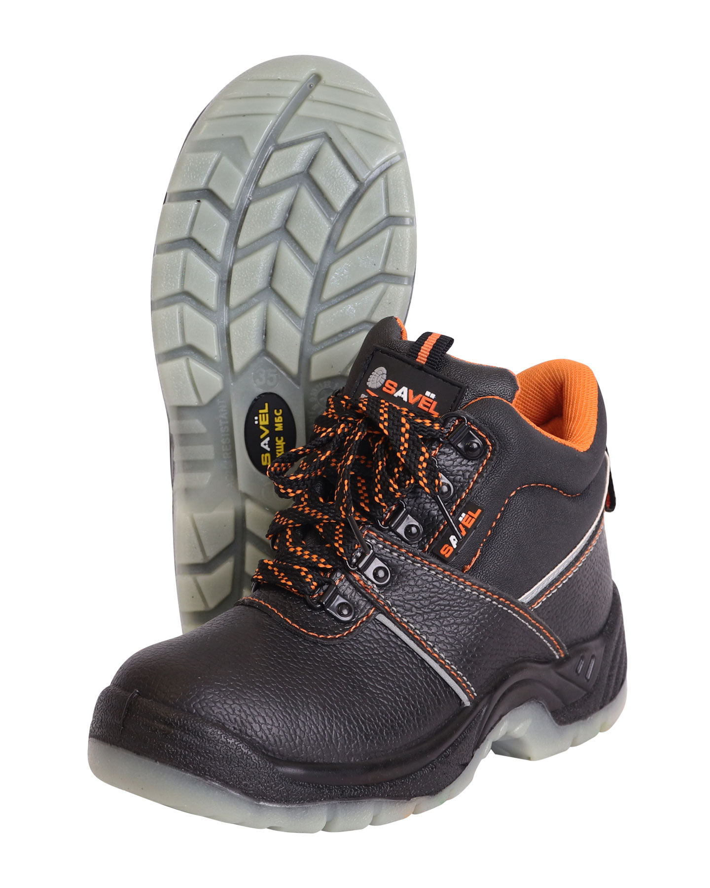 Верх ботинка имеет контрастные отделочно-скрепляющие строчки оранжевого цвета, как и подкладка, а также световозвращающие вставки для лучшей видимости в тёмное время суток.