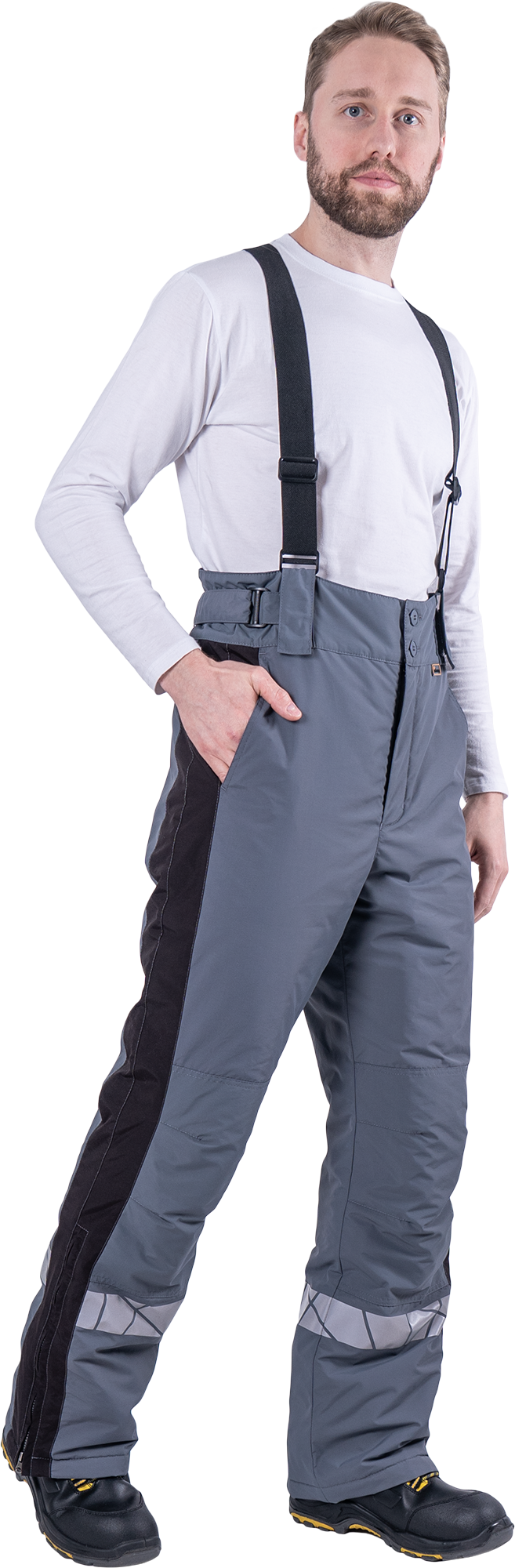 • под наколенником охватывающая термоклеевая световозвращающая полоса шириной 50 мм