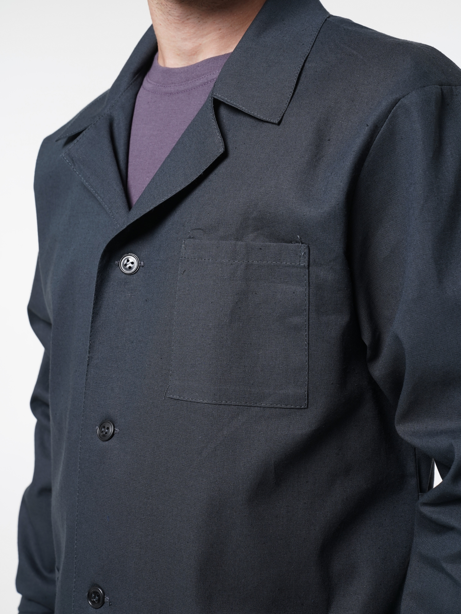 Ткань бязь, 100% х/б. Отложной воротник, застёжка на пуговицы, два кармана. Манжеты рукавов на пуговице. На спинке - хлястик. ГОСТ 12.4.280-2014.