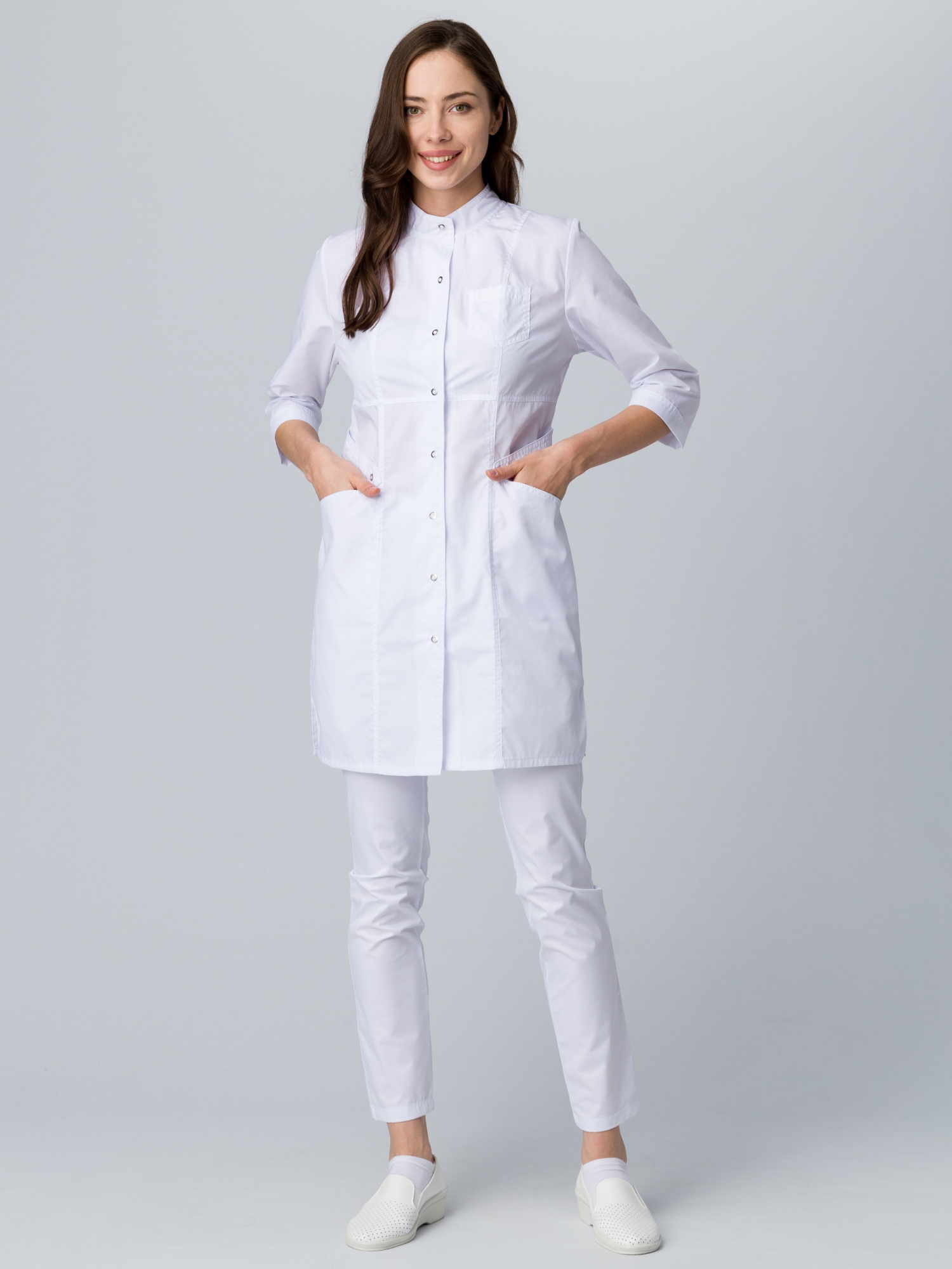 Халат женский Симпл-001 (тк.Смесовая,120) MedLine, белый (ЧЗ) (120-124/170-176)