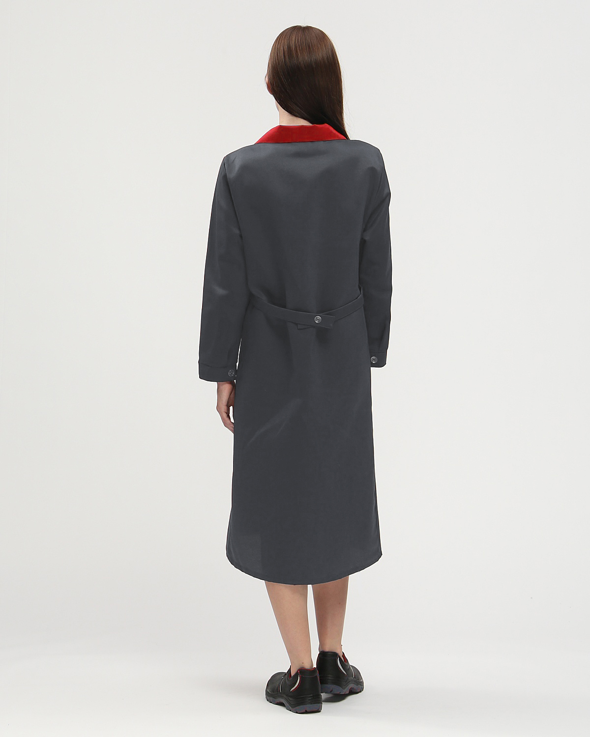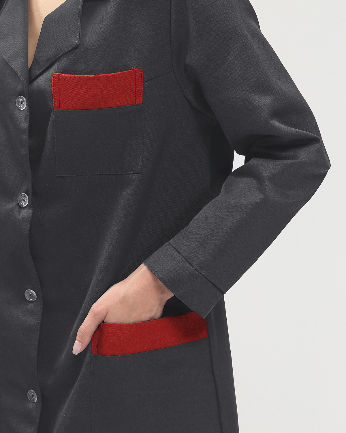 Халат женский Технолог (тк.Смесовая,210), т.серый/красный Факел (128-132/170-176)
