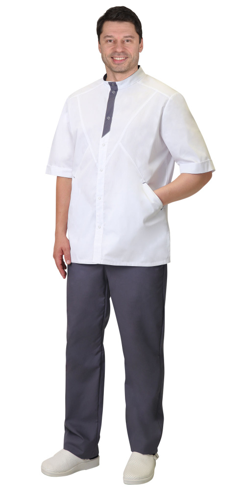 Костюм "АЛЕКС" мужской: куртка,брюки, белый с т.серым (ЧЗ)