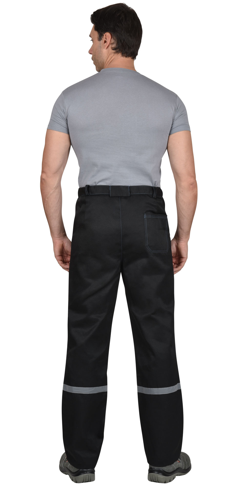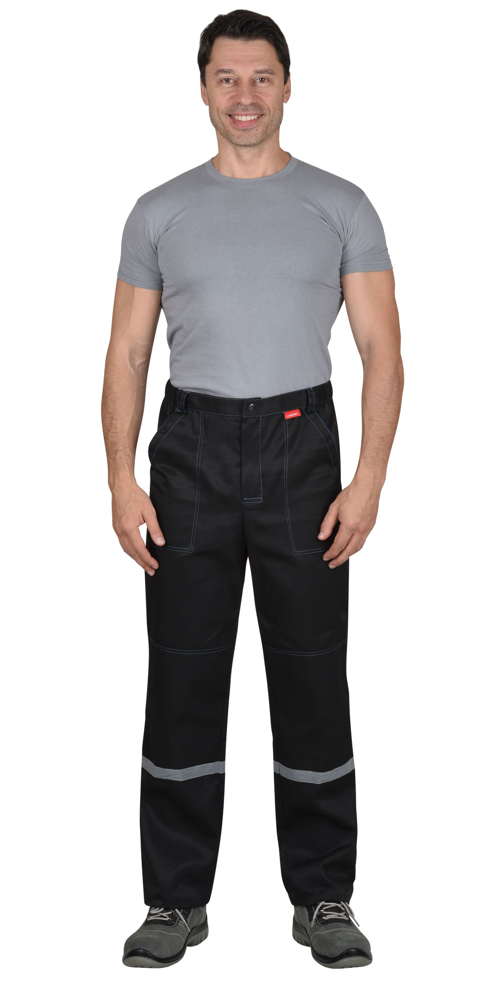 Куртка прямого силуэта, с центральной застежкой на молнию; клапаны карманов и манжеты застегиваются на кнопки. Брюки с гульфиком на молнии и застежкой пояса на кнопку; с наколенниками. СОП-25 мм