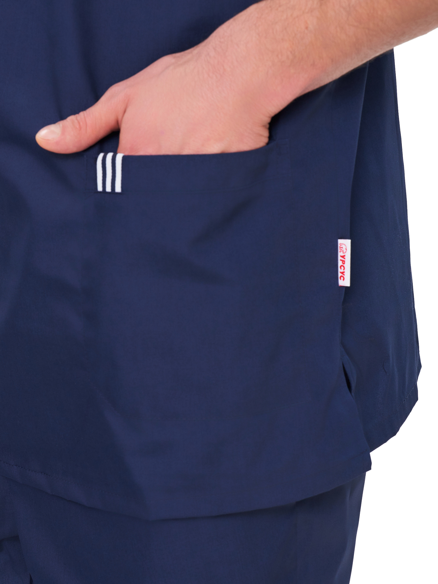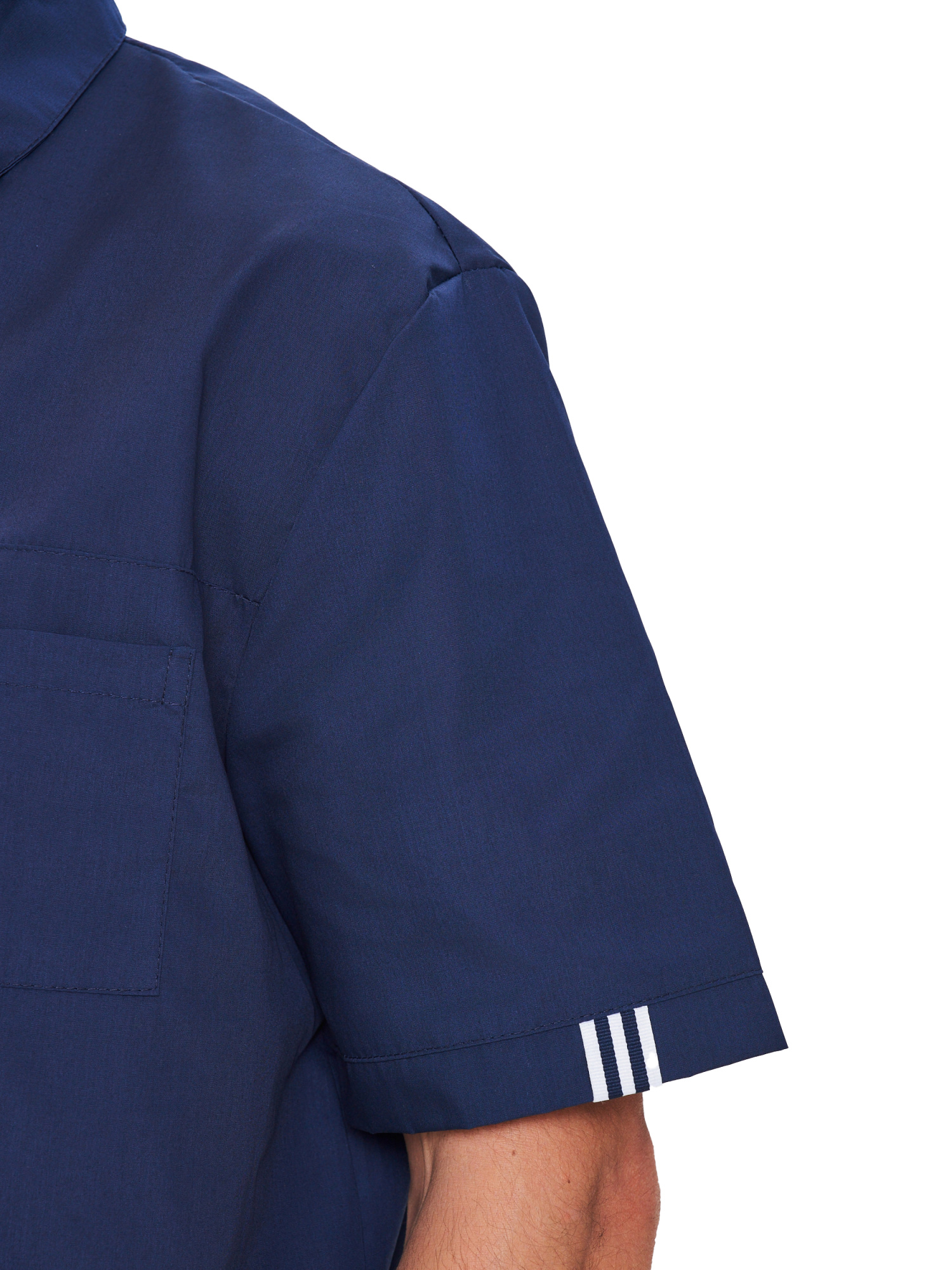 Современный удобный мужской костюм со свободной посадкой, рекомендован для сферы косметологии и работников медицинских учреждений из высококачественной смесовой ткани прекрасно переносят многократные стирки и выглядят презентабельно даже при длительных сроках эксплуатации. Широкий размерный ряд продукции позволит без труда подобрать костюм правильно по фигуре, в соответствии со спецификой профессии и с учетом индивидуальных требований сотрудника. Костюм мужской «Эра» для косметологов и медработников прост в уходе, не мнется и быстро сохнет, а материал долгое время сохранит свой первоначальный яркий цвет. Костюм состоит из блузы и брюк темно-синего цвета с отделкой декоративной лентой. Сегодня современная мода вмешивается не только в подиумные и уличные образы. Она диктует свои правила разным сферам жизни, в том числе в сфере косметологии и медицине. Костюм состоит из прочной смесовой ткани ТИСИ, отталкивающей различного рода загрязнения. Материал устойчив к пятнам и истиранию, тем самым косметологи и медработники всегда будут выглядеть опрятно и привлекательно.