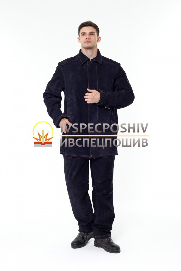 Брюки с притачной подкладкой, прямого силуэта, с откидывающейся передней частью, с застежкой по двум боковым швам на две обметанные сквозные петли и пуговицы. На поясе 5 шлевок: две – посередине передних половинок, две – у боковых швов в сторону задних половинок брюк, одна – у среднего шва брюк. На обтачке передних половинок держатели для застежки-трезубца. Отверстия для воздухообмена расположены на задних половинках брюк в области среднего и шагового швов в виде люверсов.
