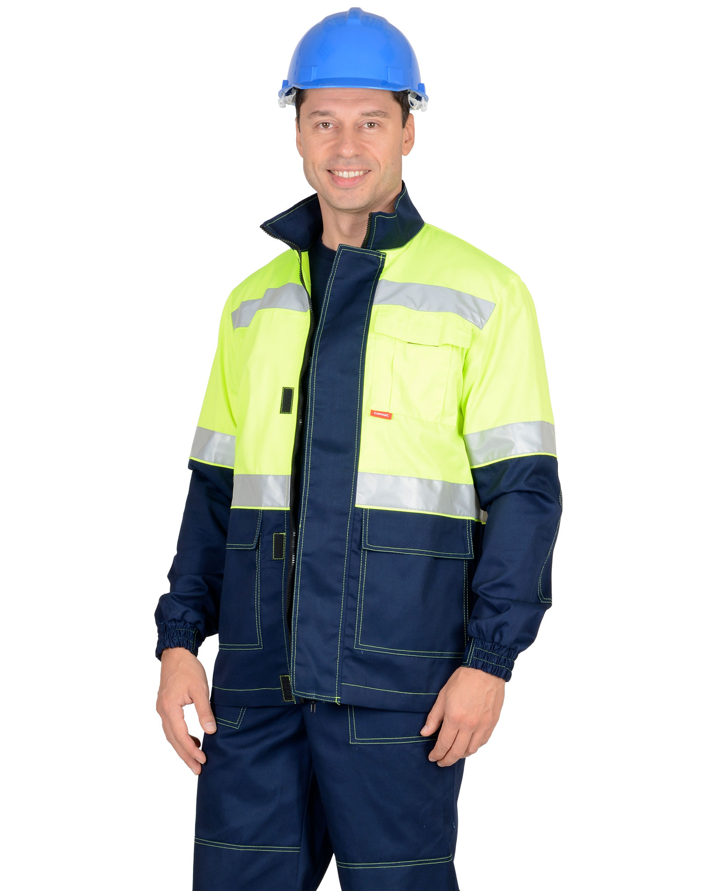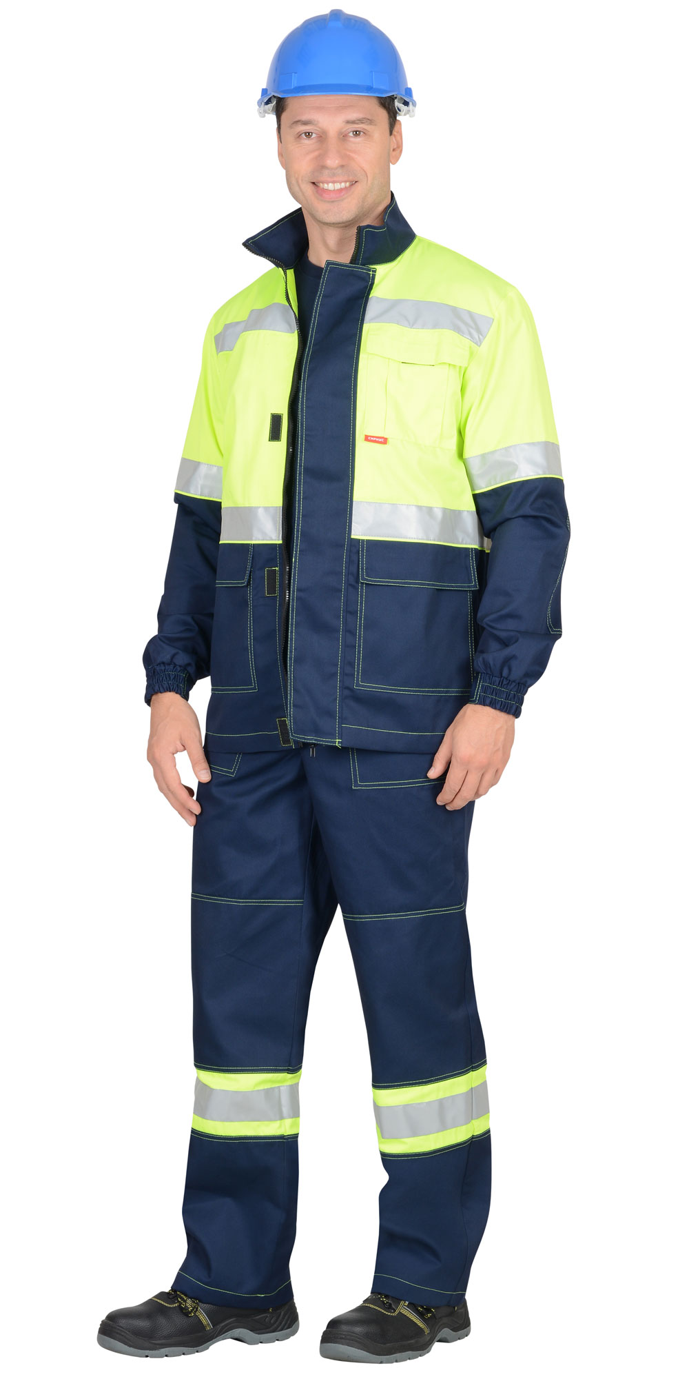 В костюме предусмотрены светоотражающие элементы (СОП) для обозначения сигнальной видимости.