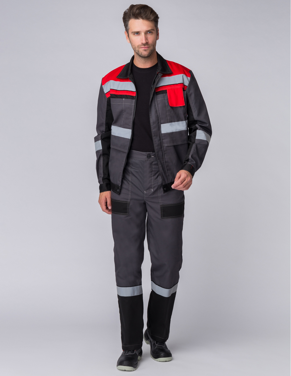 Униформа для персонала изготовлена в соответствии с ГОСТ из ткани повышенной плотности 240 гр. Надежно защищает от загрязнений, отличается повышенной прочностью и устойчивостью к истиранию. Благодаря световозвращающим полосам на куртке и брюках костюм рабочий мужской подходит для работы в местах с плохим освещением и в темное время суток. Укороченная рабочая куртка с поясом на резинке оснащена множеством функциональных карманов, в том числе закрывающимся на липучку карманом для средств связи. Куртка на молнии с расширительными складками по спине не сковывает движения и очень удобна. Рабочие брюки с карманами могут фиксироваться ремнем. Боковые карманы предназначены для размещения инструментов, усилены дополнительным слоем ткани против проколов и порезов.