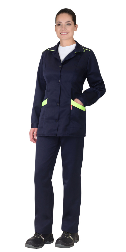 Костюм "ЗОЛУШКА" женский: куртка, брюки синий с лимонным кантом (ЧЗ) распродажа ( 88-92/158-164)