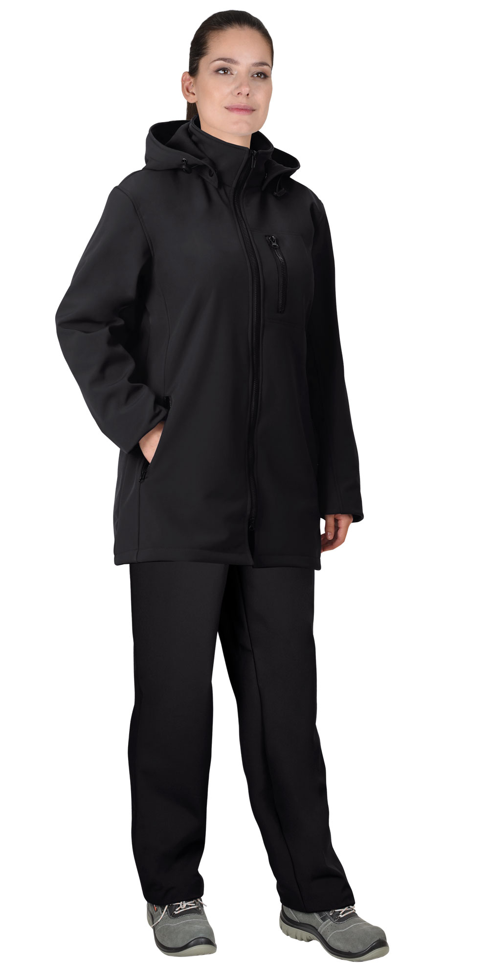 Куртка "Азов" удлиненная черная с капюшоном, софтшелл (ЧЗ)