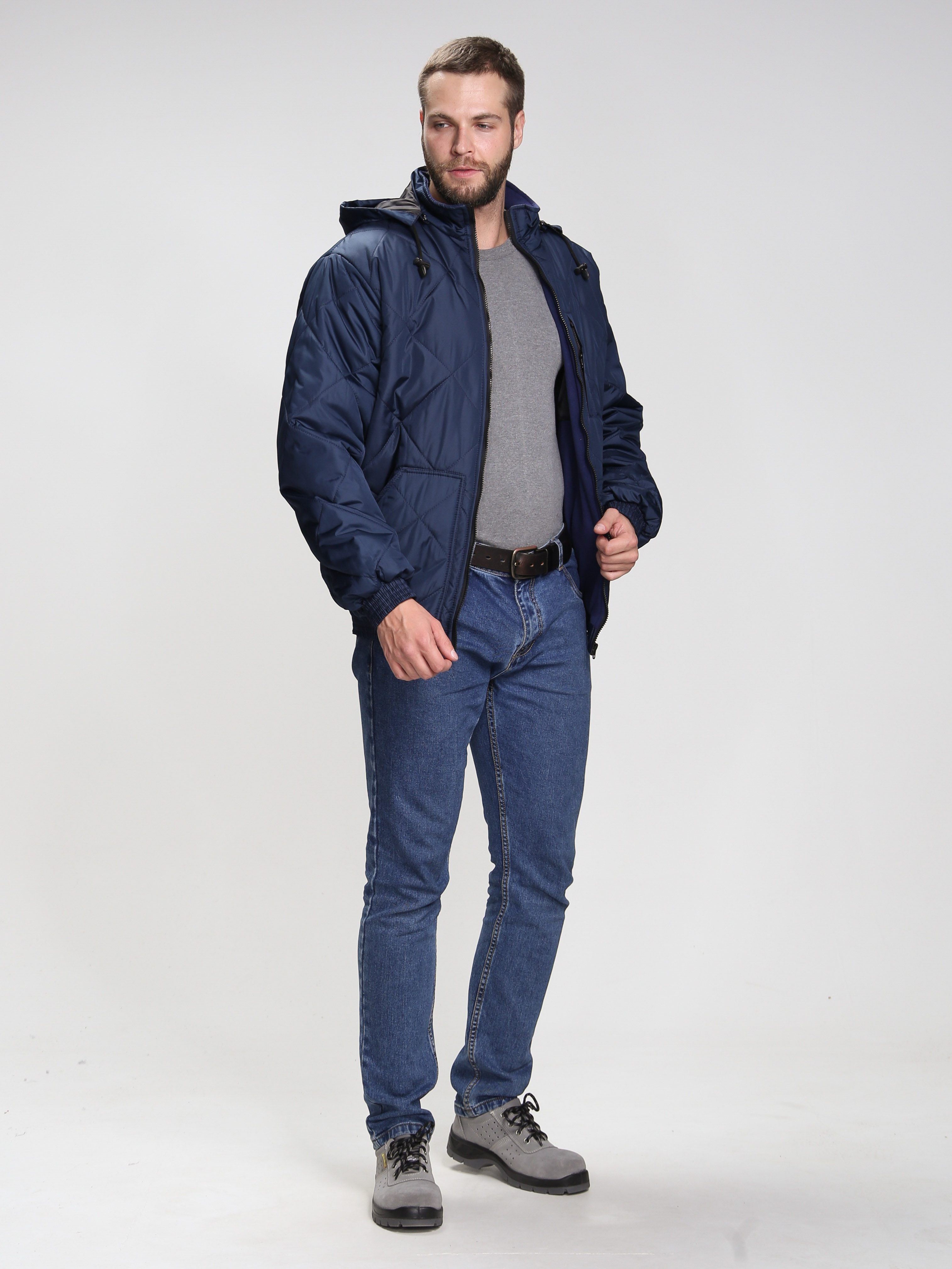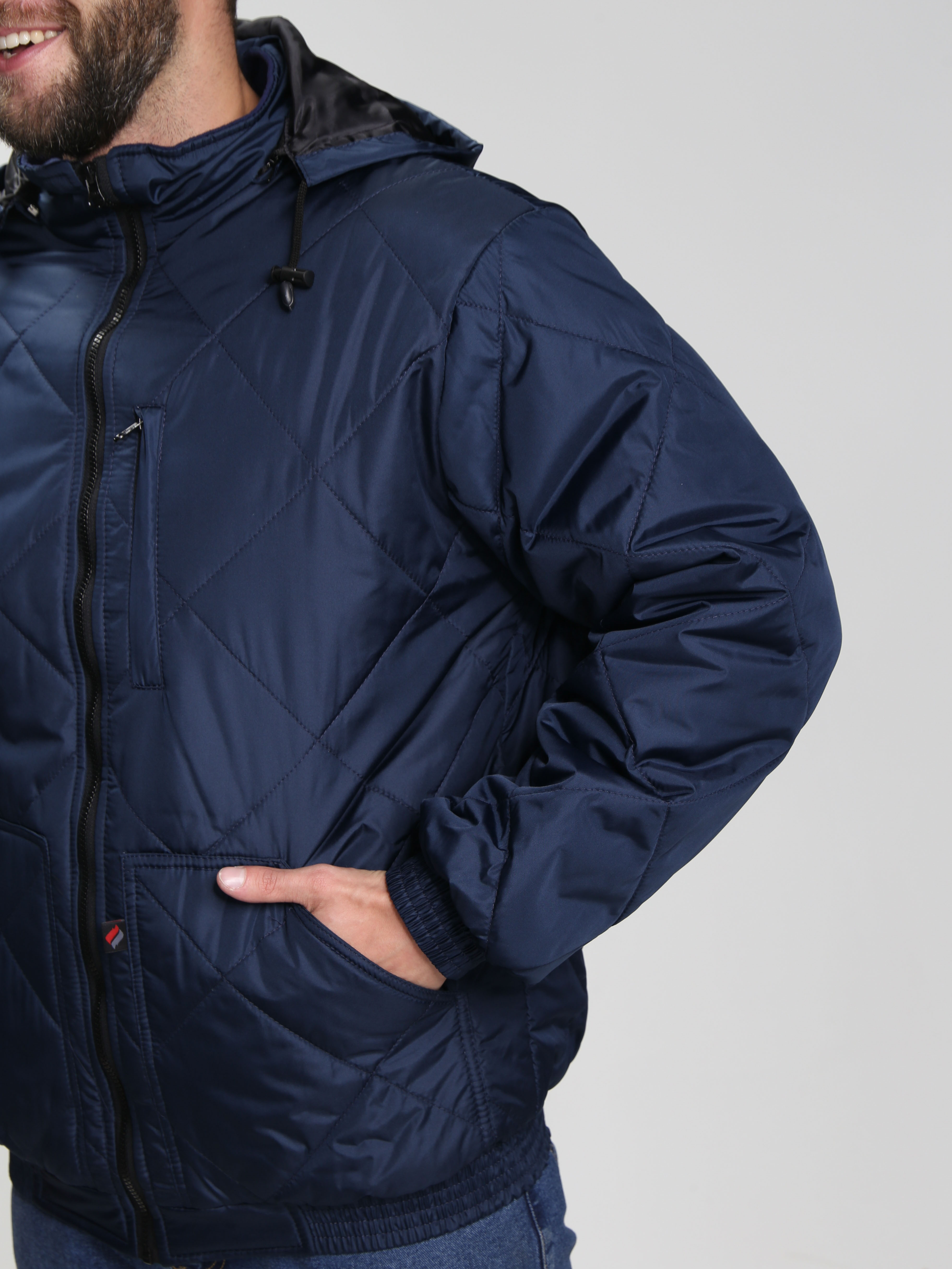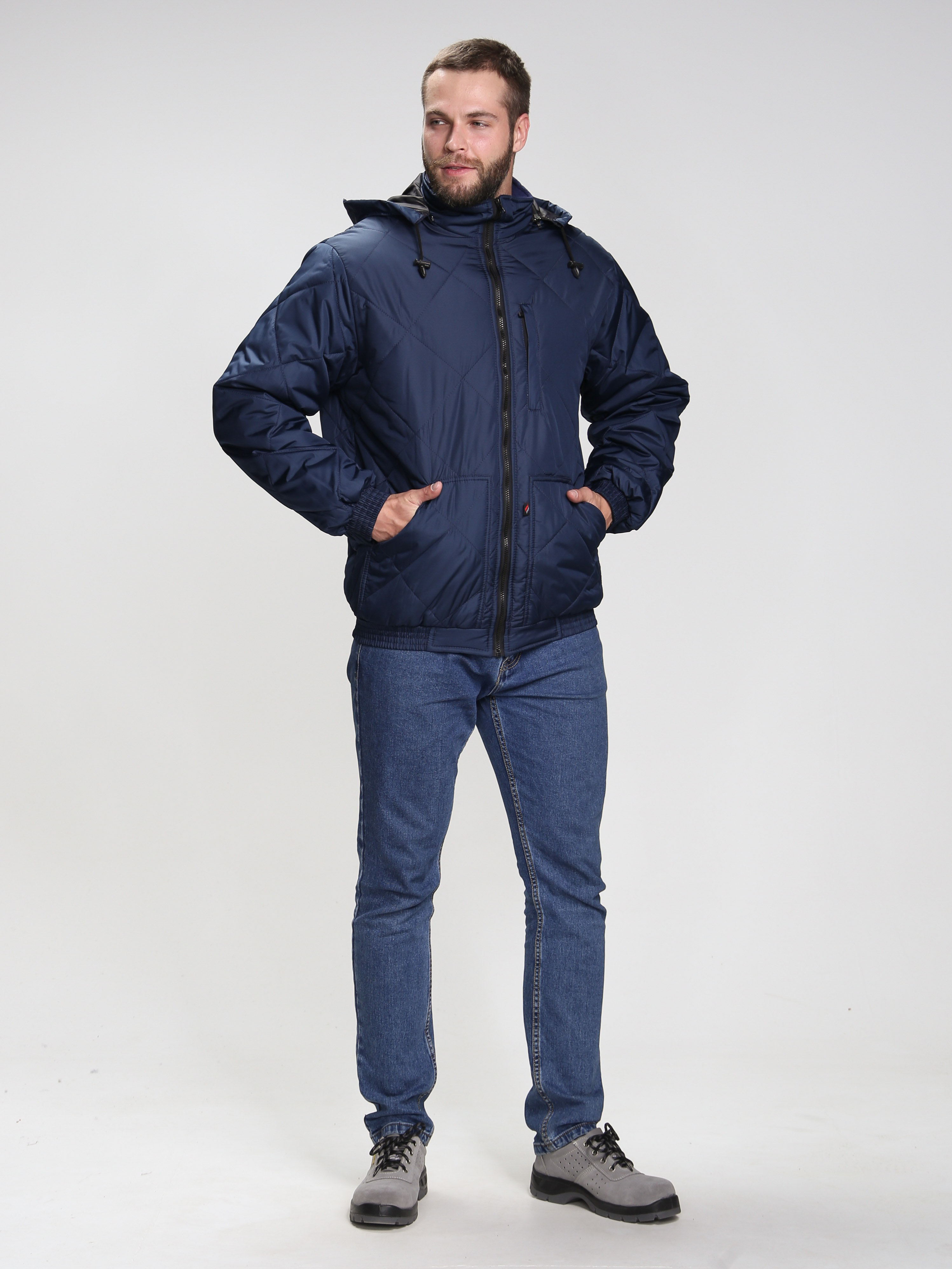 Куртка мужская демисезонная «Бомбер Люкс» зарекомендовала себя как в рабочей, так и повседневной деятельности. Стеганная куртка на подкладке из флиса отличается прекрасным внешним видом и стильным современным фасоном. Благодаря плотной ткани с влагоотталкивающей пропиткой и утеплителю синтепон куртка великолепно защищает от холода и осадков. Мужская короткая куртка с капюшоном застегивается на молнию и надежно закрывает шею от ветра с помощью воротника-стойки. При желании, капюшон можно отстегнуть или закрепить фиксаторами по овалу лица. Нижние утепленные стеганые карманы согревают руки в холодное время года, а верхний нагрудный карман на молнии подходит для хранения нужных мелочей. Дополнительно присутствует внутренний карман на липучке. Благодаря укороченной конструкции на поясе-резинке куртка отлично подходит водителям транспортных средств.