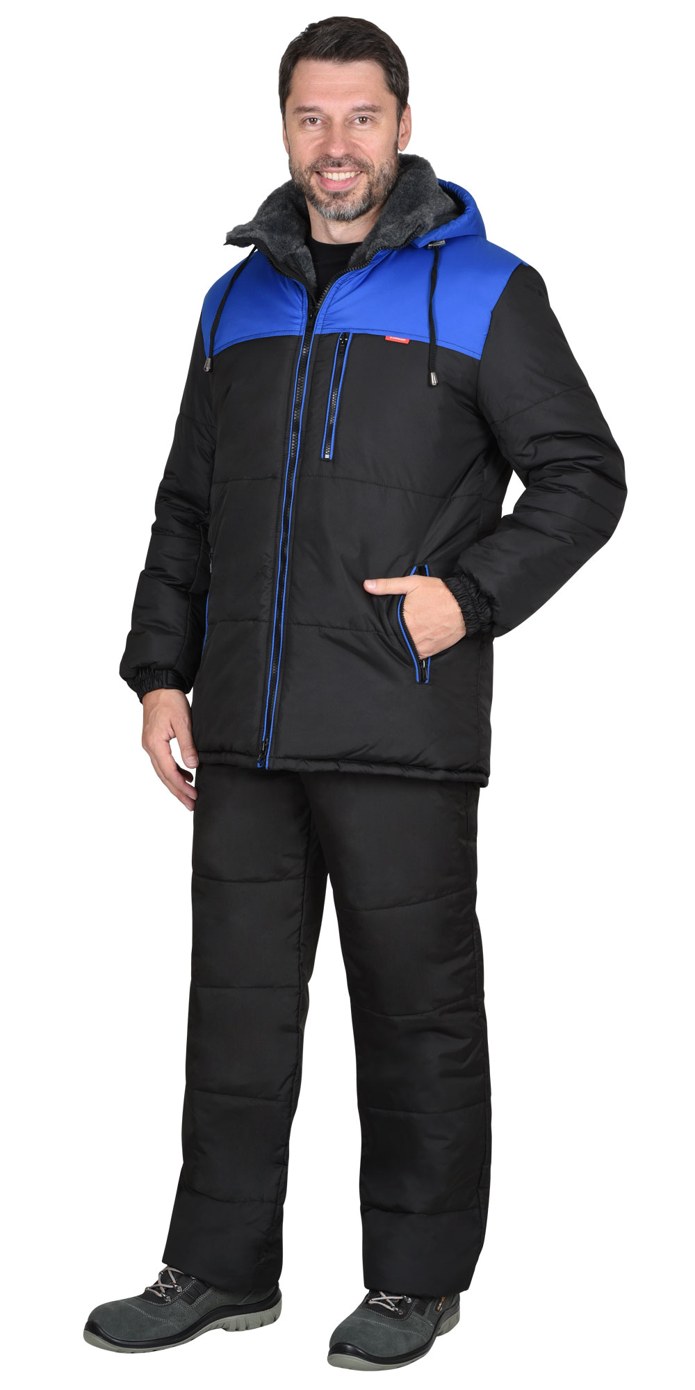 Куртка "ДРАЙВ" зимняя мужская, черная с васильковым, подкладка иск. мех (ЧЗ) (120-124/170-176)