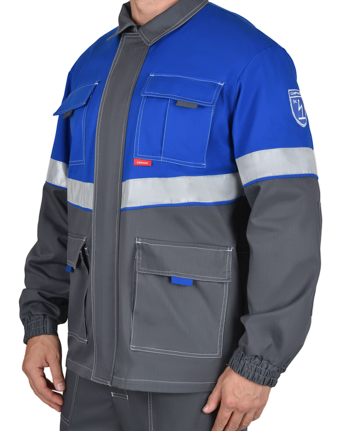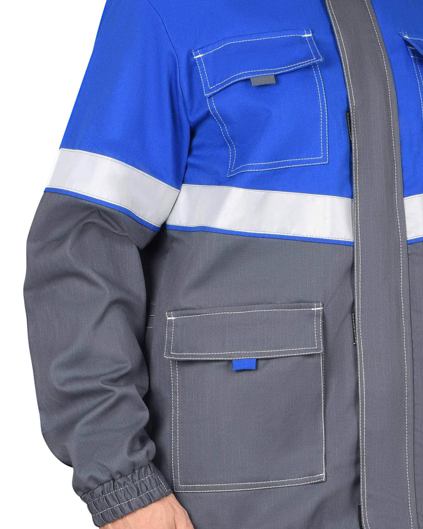 Куртка "Самотлор" длинная, серая с васильковым (ЧЗ) (104-108/182-188)