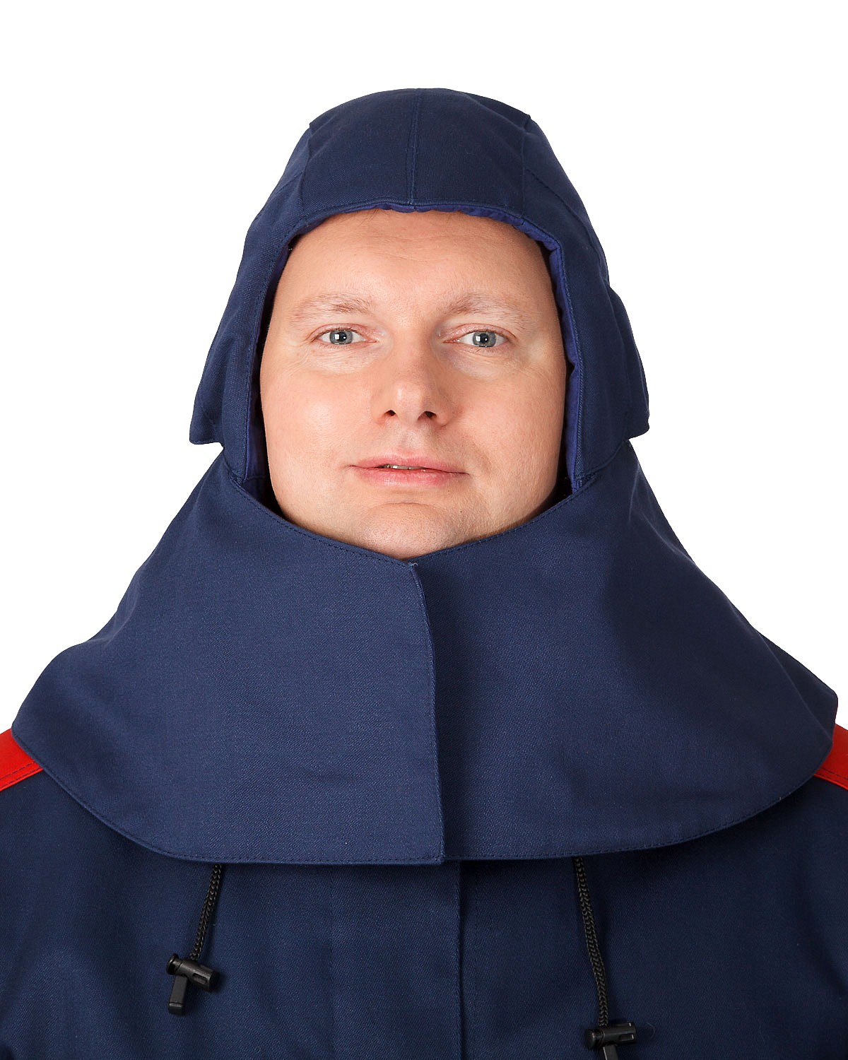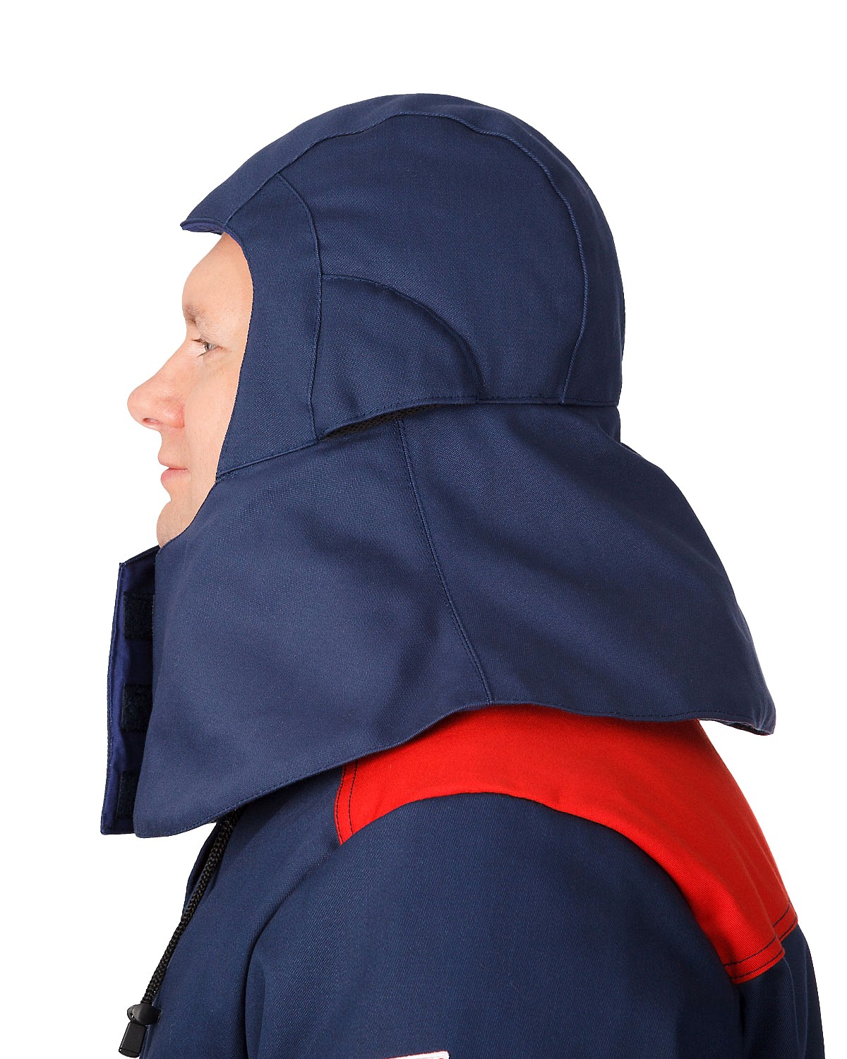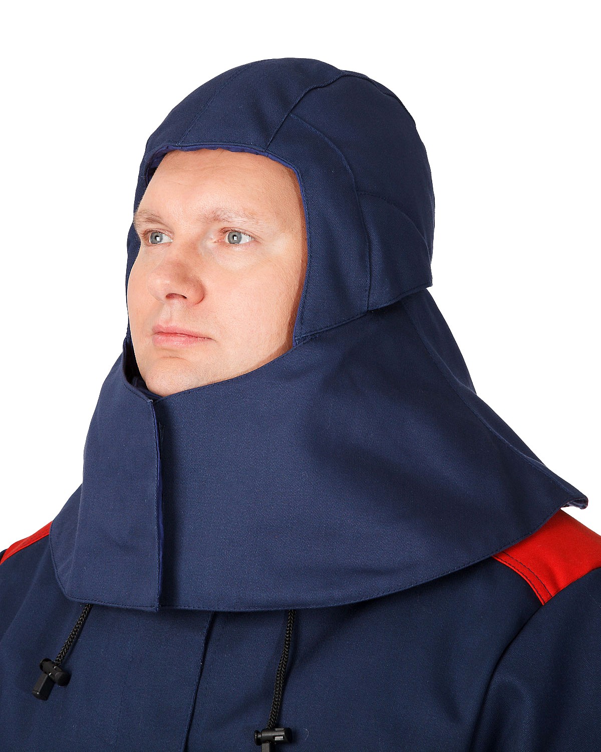 Подшлемник со слуховыми отверстиями, с хлястиком на резинке по горловине и с пелериной. При надевании подшлемника пелерина располагается поверх воротника куртки и обеспечивает дополнительную защиту, т. е. искры легко скатываются по пелерине и куртке вниз. Пелерина и хлястик застегиваются на огнестойкую ленту велькро. Слуховые отверстия с сеткой прикрыты утепленным клапаном. Конструкция подшлемника обеспечивает хорошее прилегание по шее и лицевому вырезу.