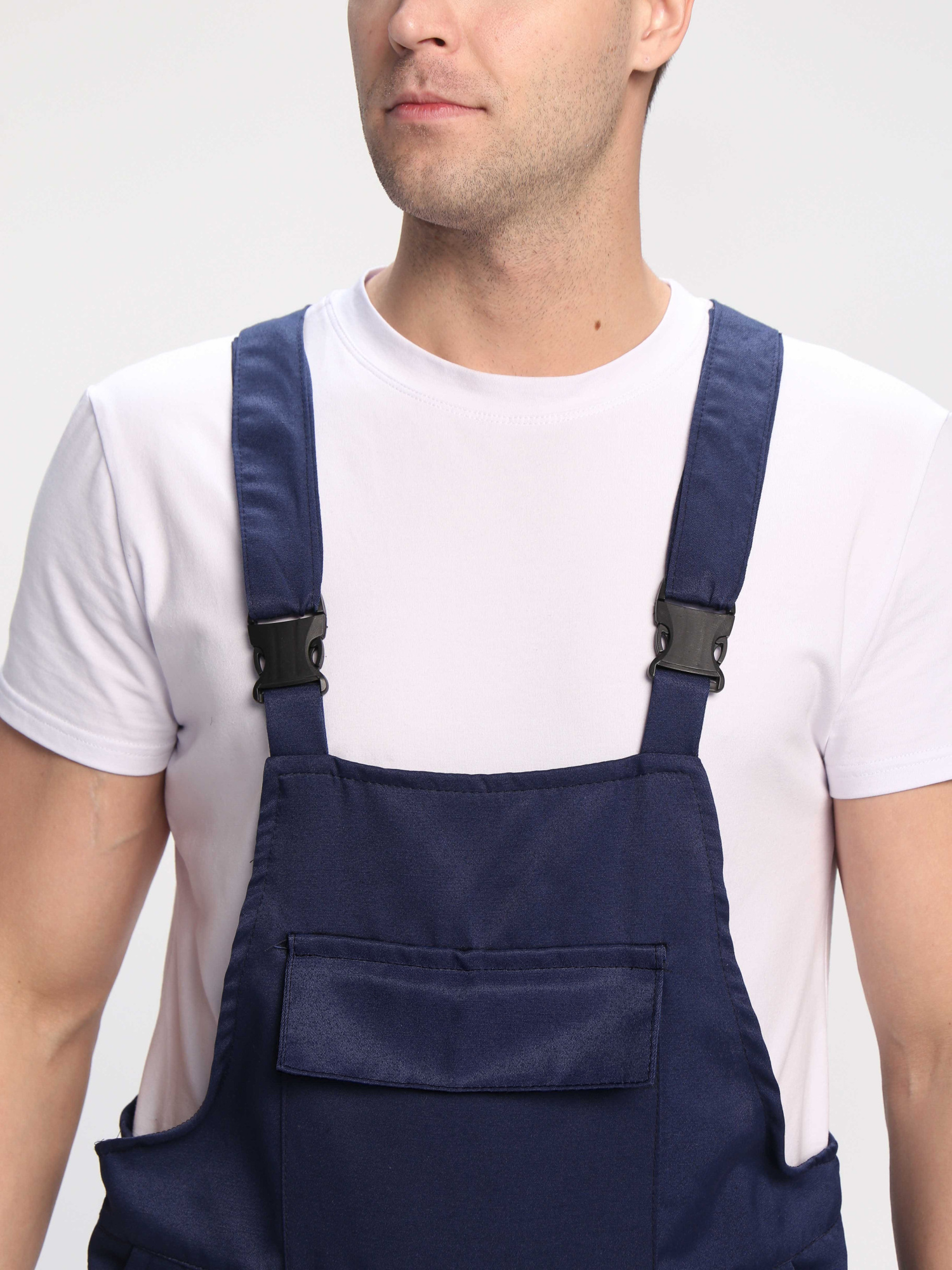 Полукомбинезон мужской рабочий «ИТР» изготовлен в соответствии с ГОСТ для защиты от общих производственных загрязнений и механических воздействий. Благодаря бретелям с регулировкой по длине и кулиске на резинке униформа прямого кроя подходит мужчинам разной комплекции, комфортна в работе, не сковывает движения. На груди полукомбинезона располагается большой закрывающийся на липучку карман, помогающий хранить под рукой все необходимые материалы. Дополнительные карманы по бокам подходят для размещения объемных предметов. Спецодежда застегивается на пуговицы спереди и сбоку, удобно надевается и снимается. Отстрочка в цвет ткани придает форме классический внешний вид и помогает комбинировать полукомбинезон с большинством курток.