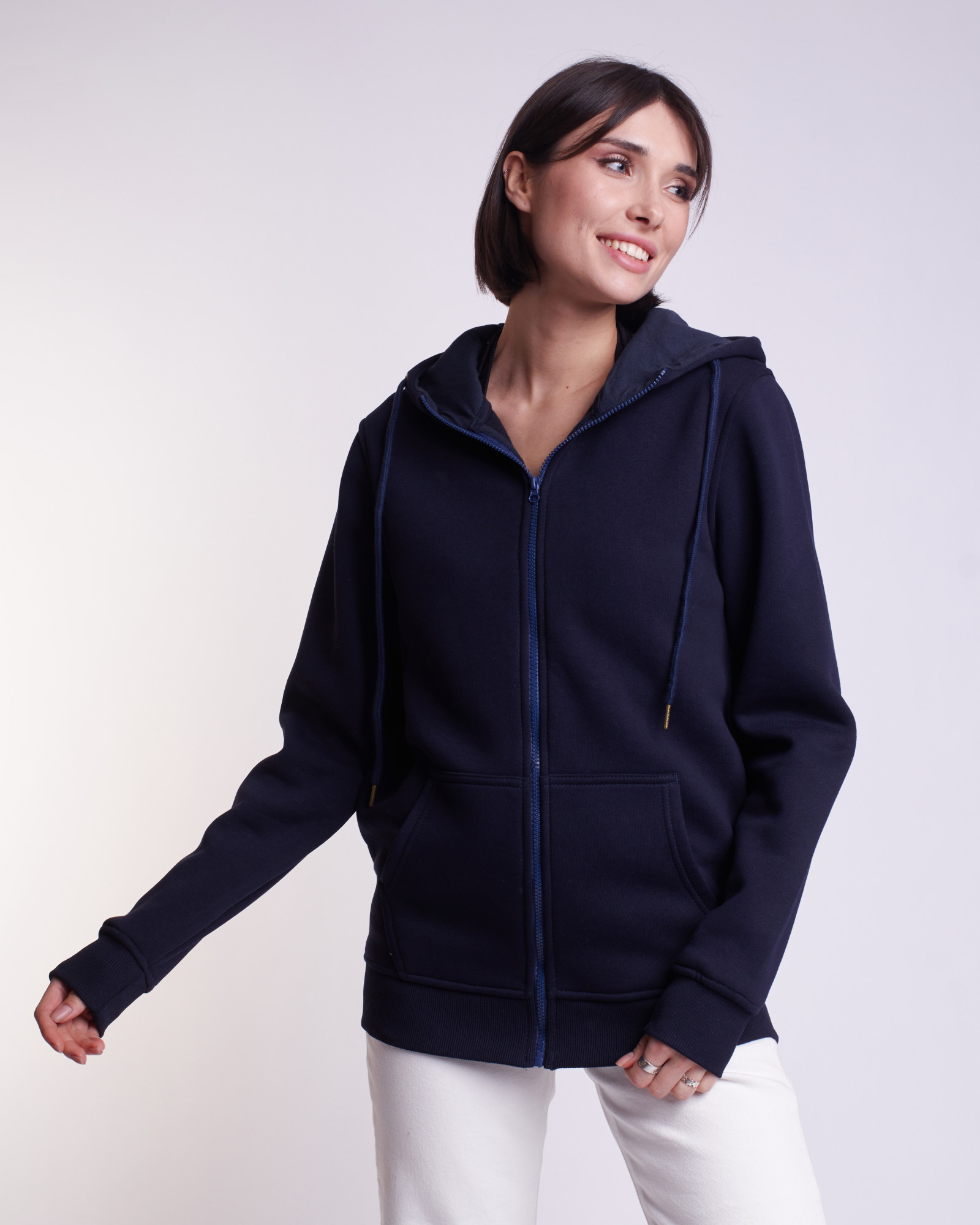Толстовка (худи) на молнии ПЕТЛЯ темно-синяя