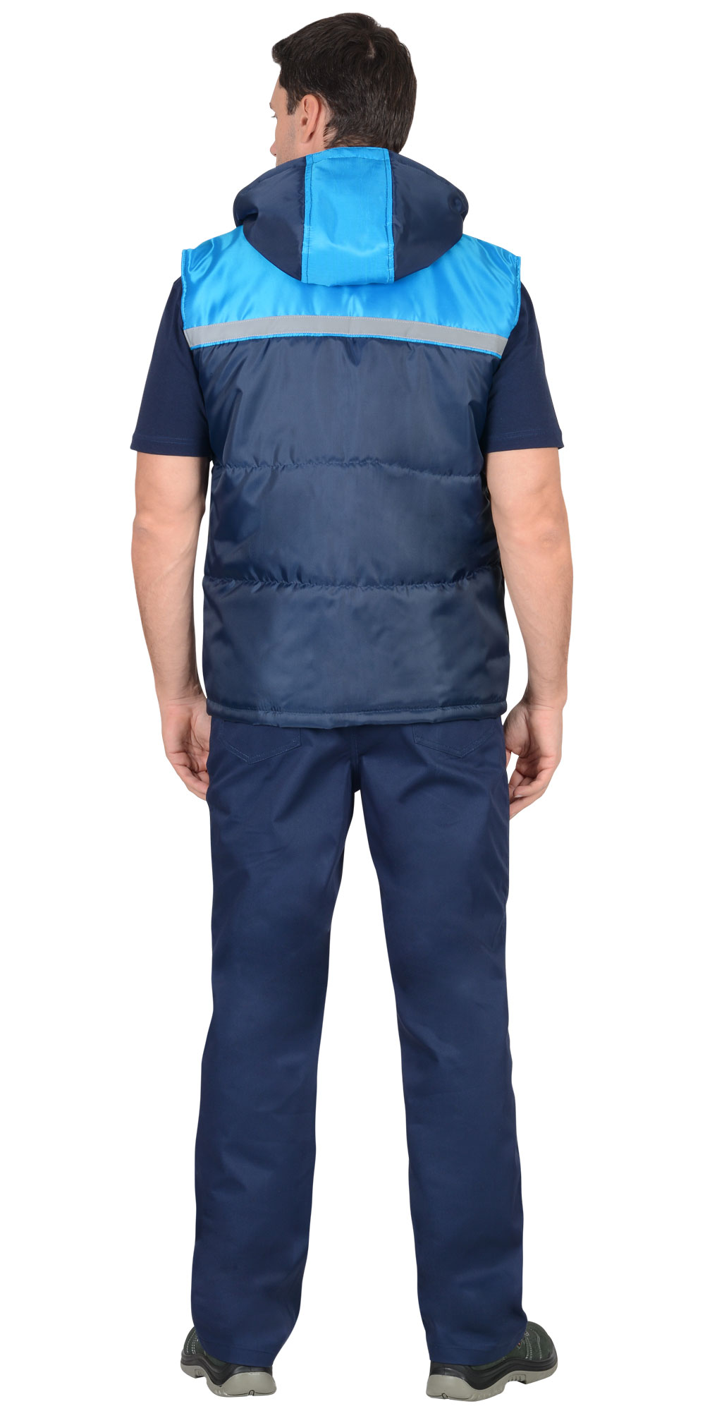 Жилет "Экспресс" с капюшоном и СОП 25мм. синий с голубым (ЧЗ) (120-124)