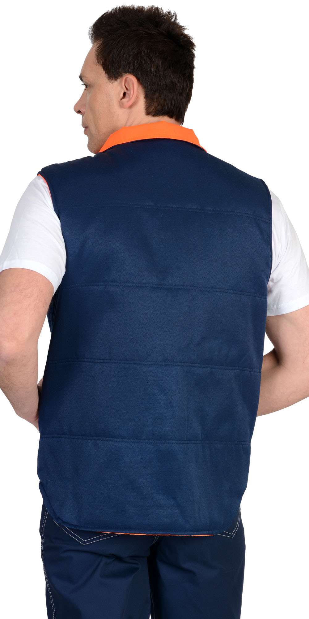 Жилет "ПРОФИ" утеплённый, синий подкладка Таффета оранжевая (ЧЗ) (120-124)