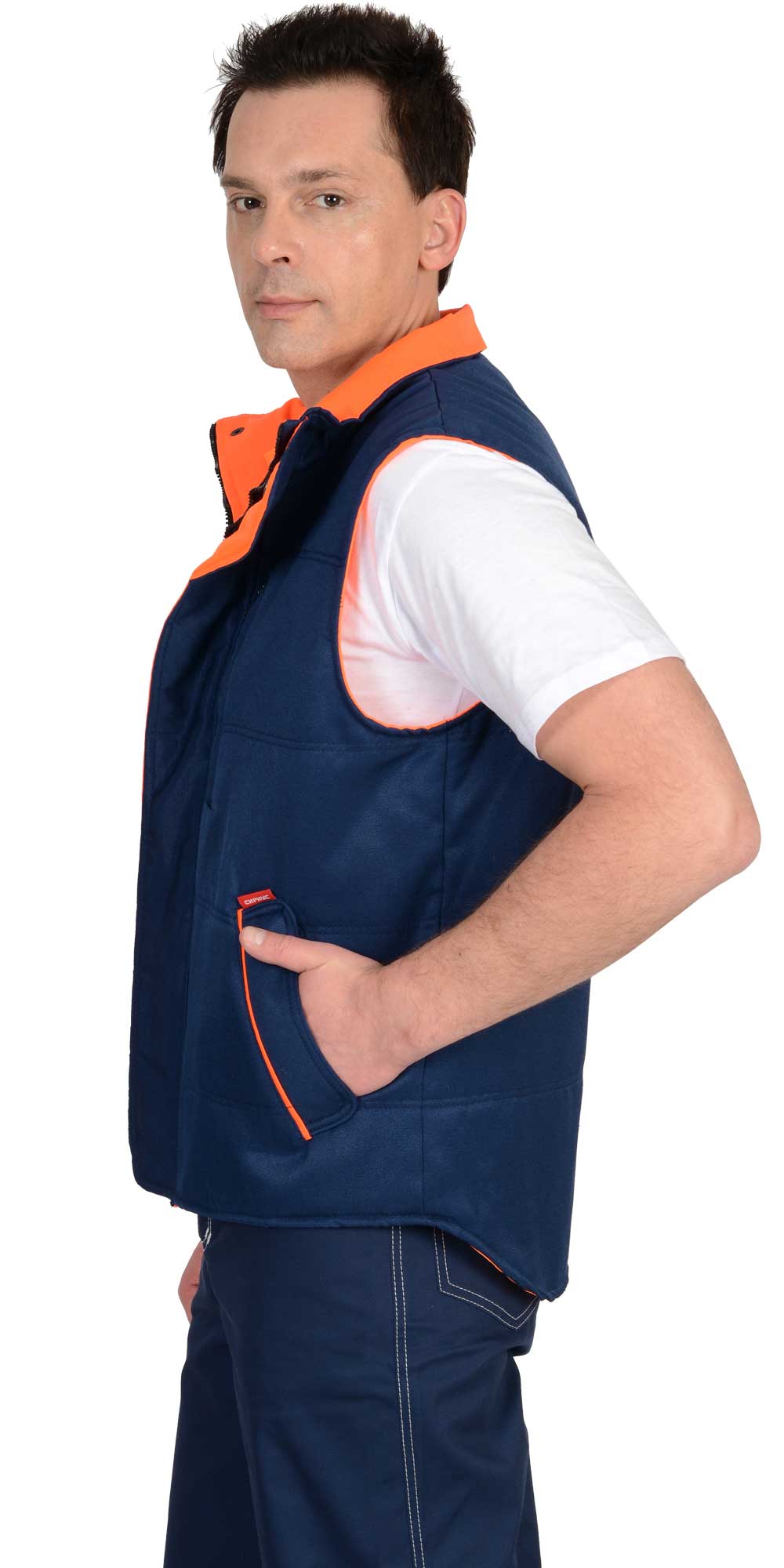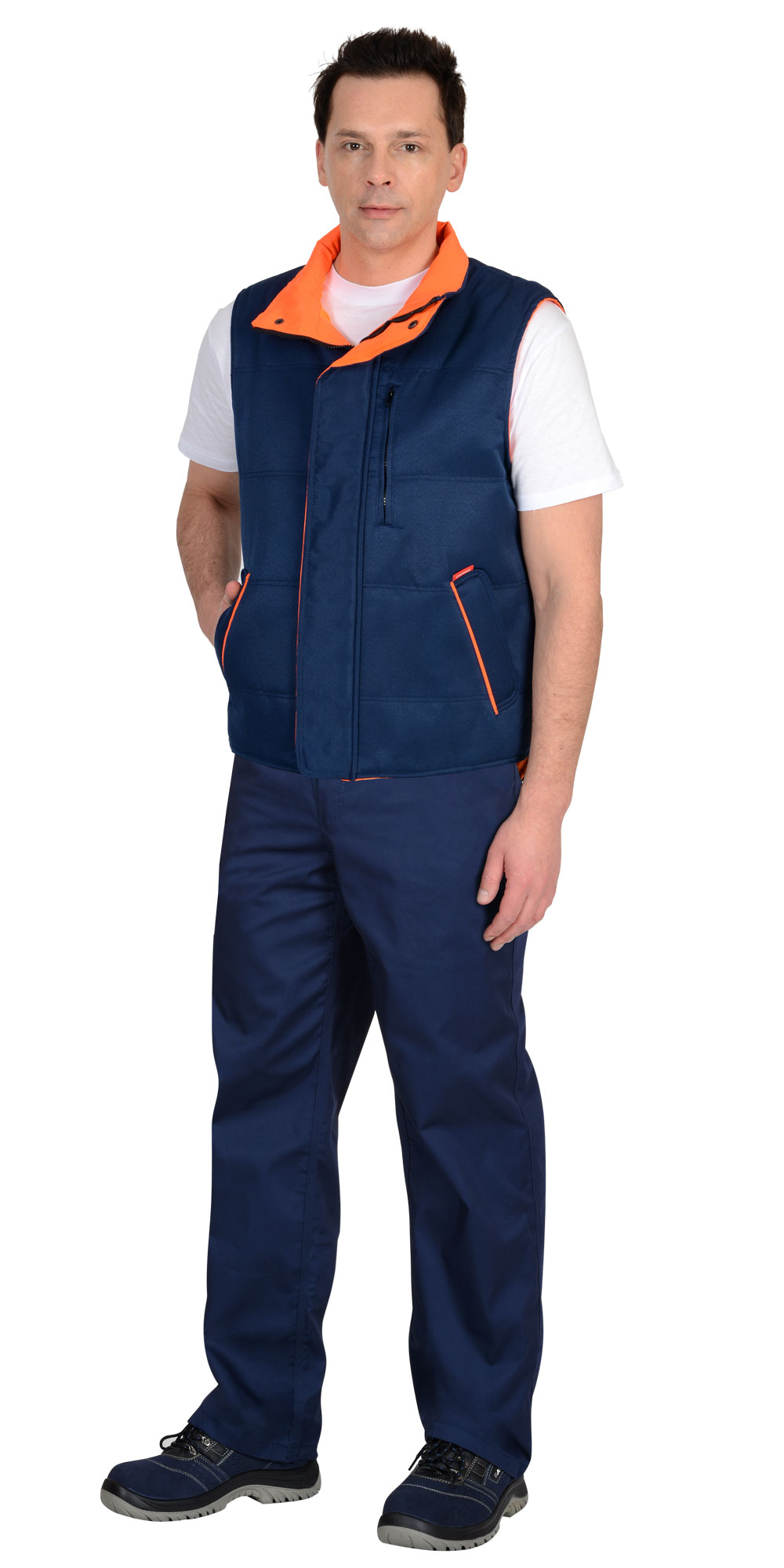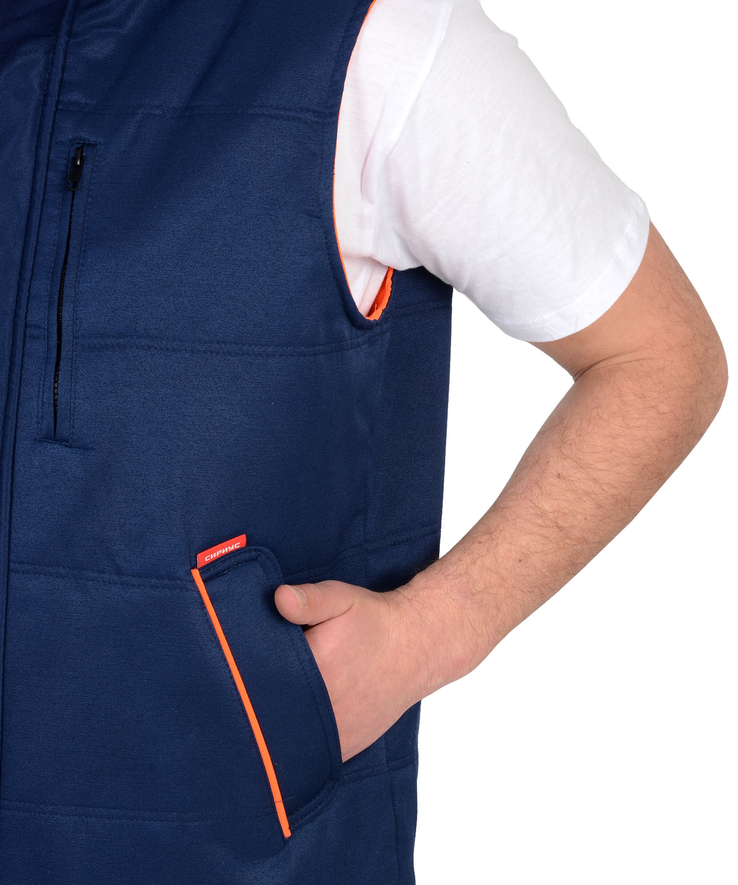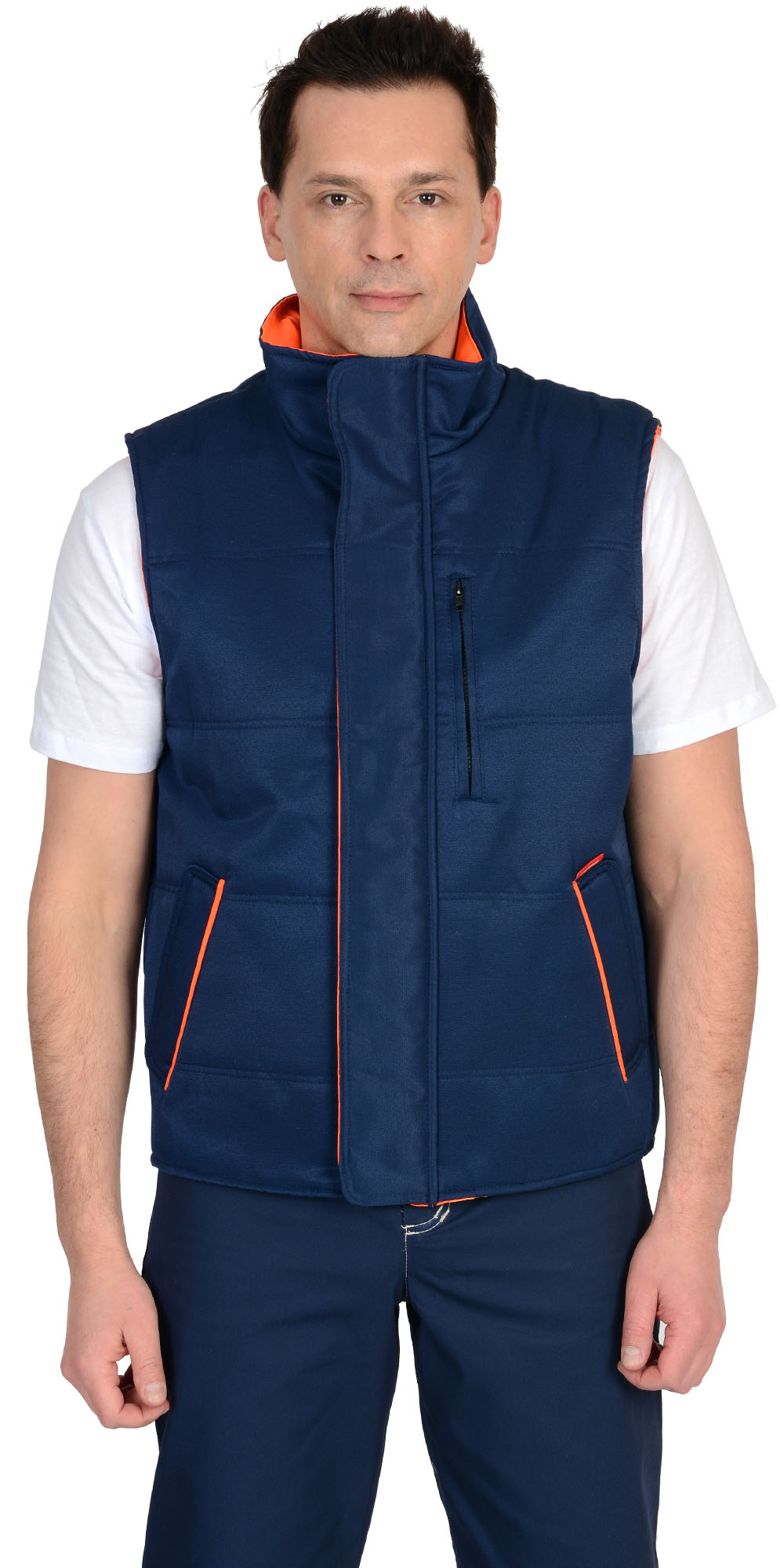 Жилет "ПРОФИ" утеплённый, синий подкладка Таффета оранжевая (ЧЗ)