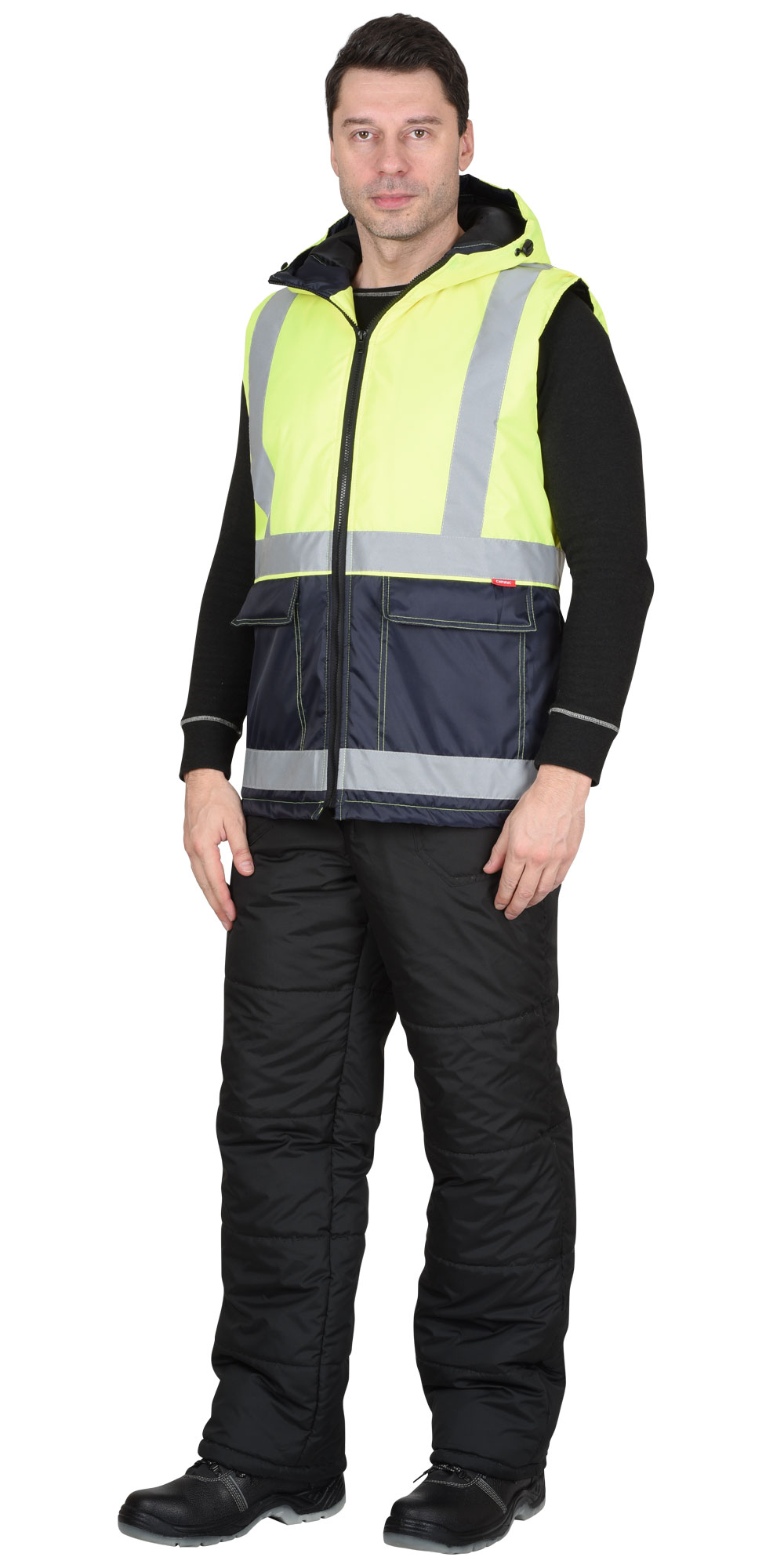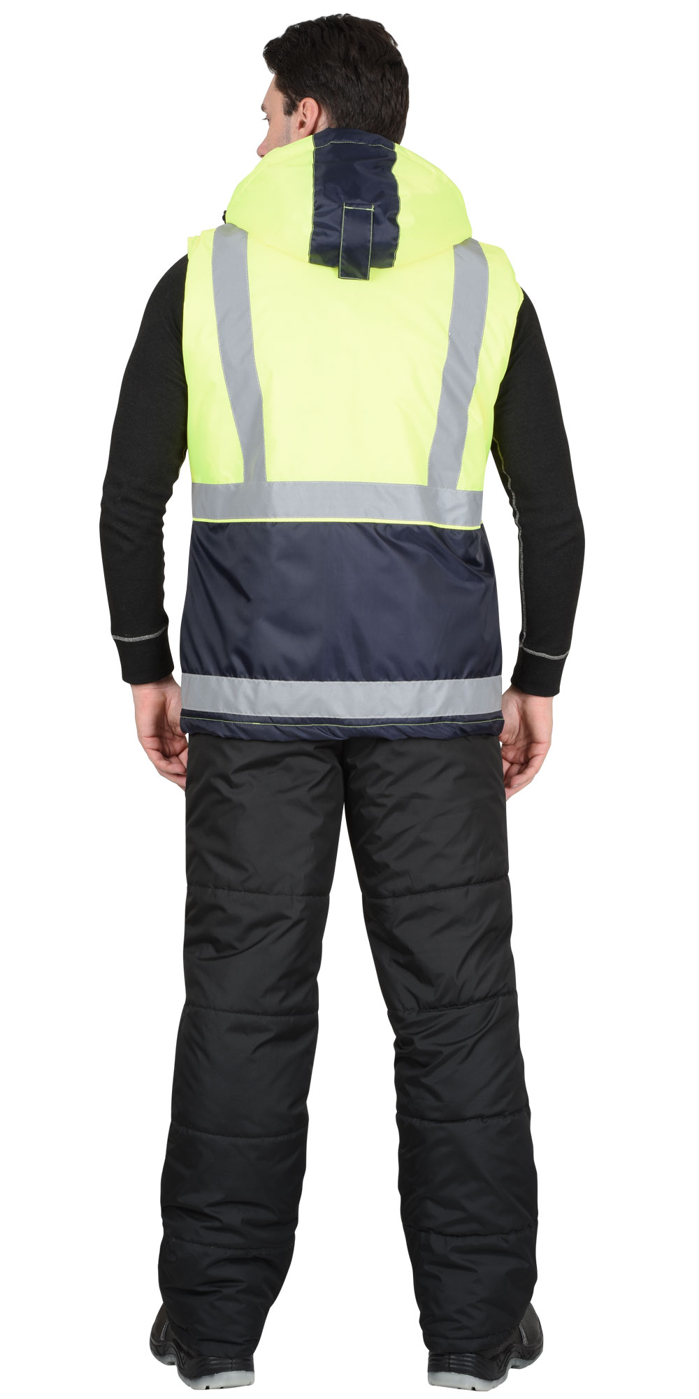 Жилет "Терминал" с капюшоном темно-синий с лимонным (ЧЗ) (112-116)