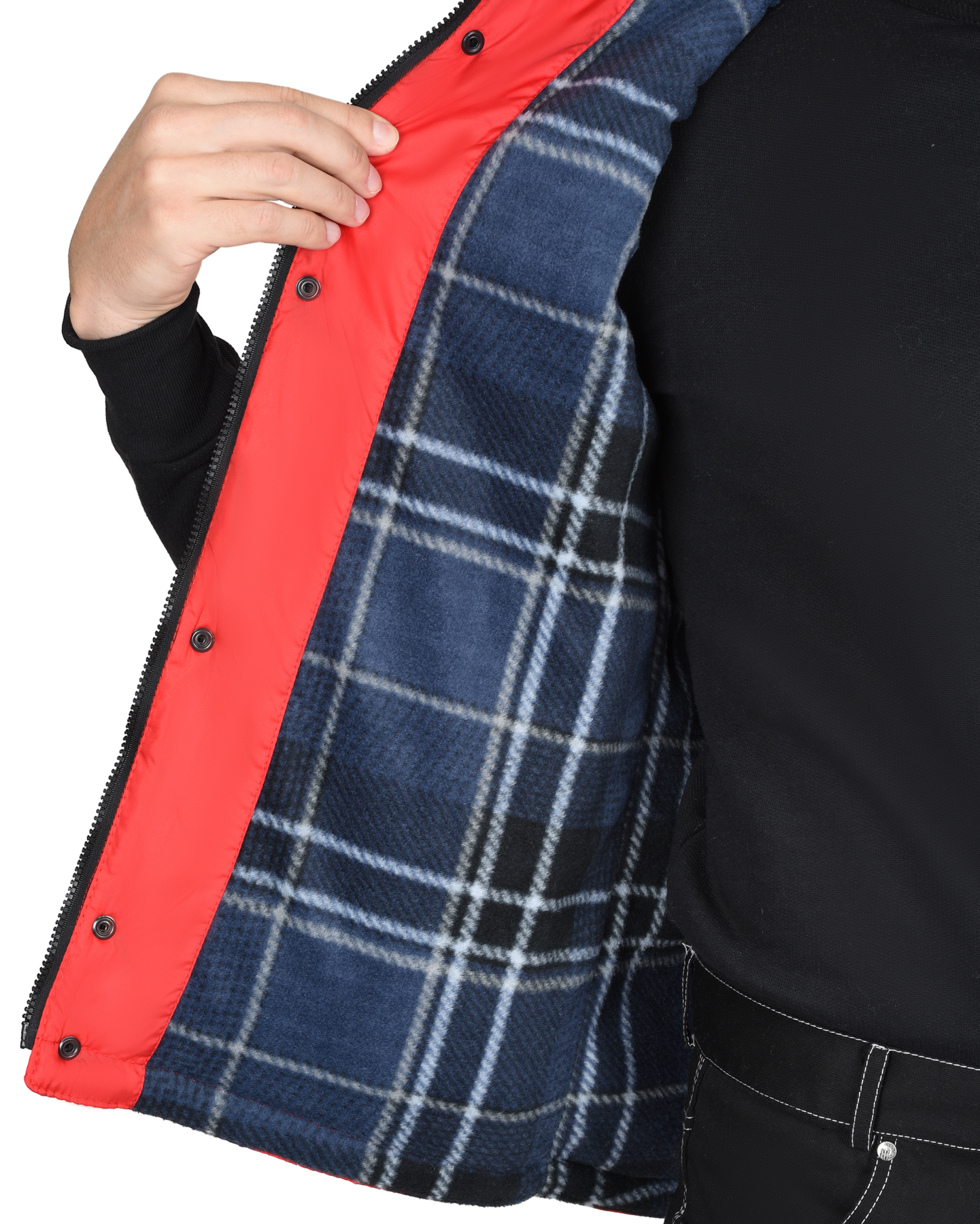 Материал подкладки: полиэфирное трикотажное полотно «флис», состав: 100% ПЭ, плотность 180 г/м2, цвет: синий в клетку